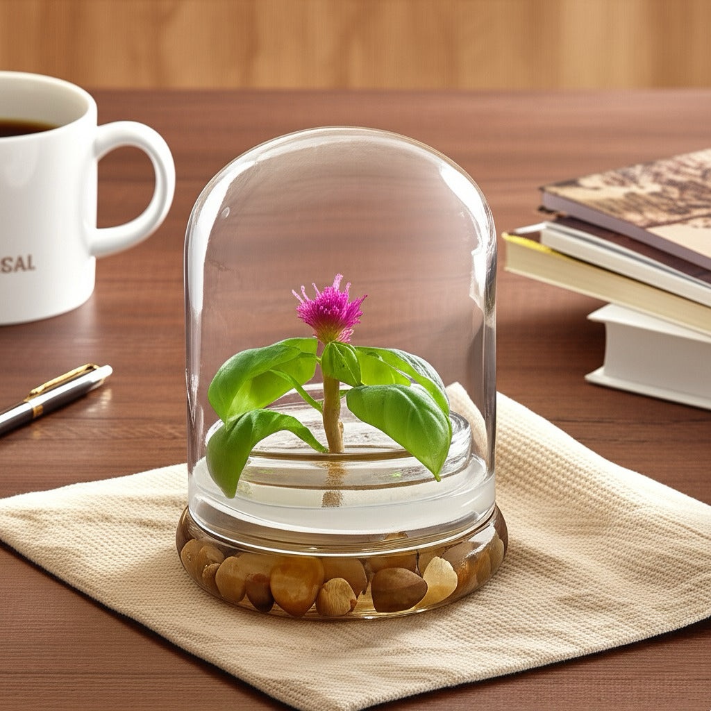 Celosia is a colorful flower resembling the head of a rooster, hence the name Cockscomb. We've miniaturized the plant to fit inside a 3.5" self-sustaining ecosystem so that you can add a colorful touch to your office desk or living space without any care!