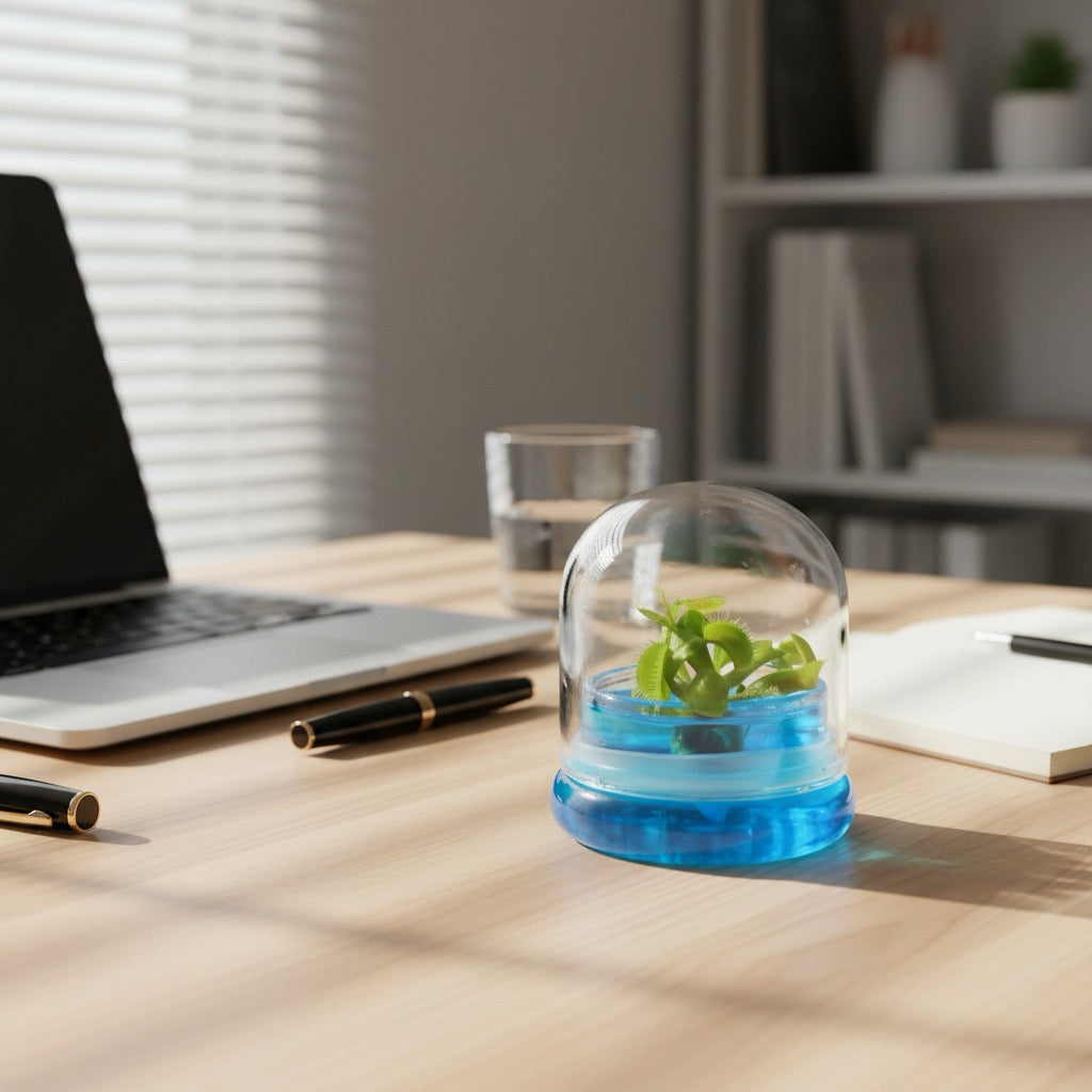 Our Venus Flytrap terrarium is a truly mini eye-catcher that worths a double-take. It grows in a convenient-sized ecosphere that contains all the necessary nutrients to grow and thrive. No watering or insect feeding is needed. Simply unpack, place, and watch in amazement as your plant let multiplies to over 30 new plants and grows in size!